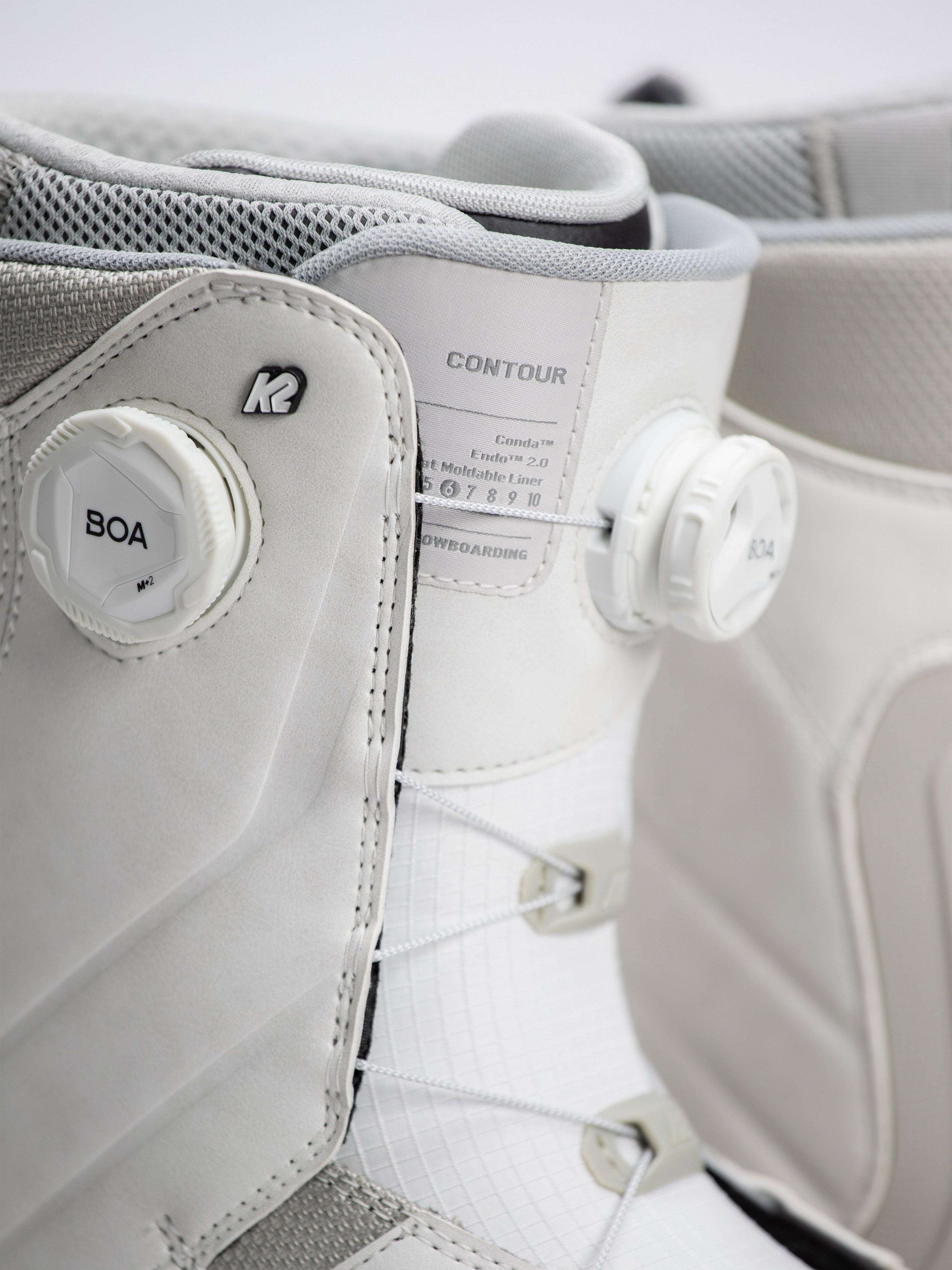 The secret to the award-winning fit is our Conda™ liner lacing system. Powered by a BOA® Fit System dial, this forgiving and adjustable harness is designed to pull the user's heel into the boot's heel pocket. This urethane-based harness hugs your ankle and flexes naturally. Externally, we started with an articulating cuff to reduce distortion when bending the knee, and we've integrated our Flex Zone calf panel at the top of the cuff, helping to keep legs happy all day long. A high-powered BOA® Fit System H4 Coiler closes the shell securely and can be done without removing your gloves. Lastly, to add durability and maintain the boot's flex over the boot's lifetime, we constructed the K2 Contour using our Endo™ technology.